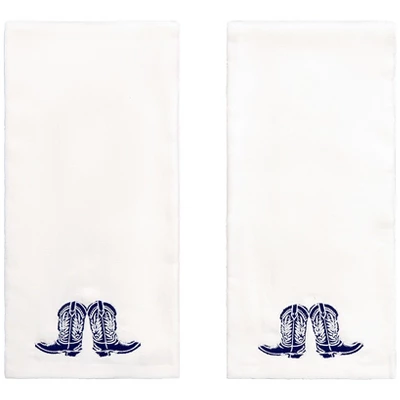 Add a touch of Western charm to your bathroom with the Buckaroo Hand Towels. This set features two white cotton hand towels, each beautifully embroidered with blue cowboy boots. Measuring 16″ x 25″, these towels are not only stylish but also practical. Made from high-quality cotton, they are soft, absorbent, and durable. Easy to care for, simply machine wash and tumble dry on low.