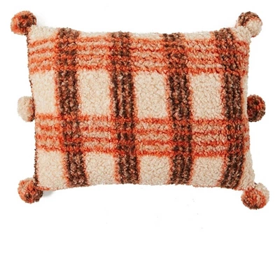 Add a cute touch of autumn harvest style to your home with this throw accent pillow that has a plaid motif. The eye-catching pattern complements your interior design with ease and is comfortable for the napping guests after a big meal. When it gets dirty or you want to switch it out for the season, gently shake out and spot clean by hand if necessary. Polyester with polyfill. Gently shake out and spot clean by hand. 18″W x 13″L