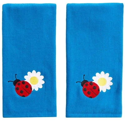 Transform your bathroom into a cheerful haven with this enchanting set of hand towels. Each towel is adorned with intricately embroidered ladybugs, delicate daisies, and playful polka dots, all framed by a charming checkered border. The vibrant red and black ladybugs bring a pop of color, while the white daisies add a touch of elegance. Crafted from premium, soft cotton, these towels are not only visually appealing but also highly absorbent and durable, making them perfect for daily use. Easy to maintain, simply toss them in the washing machine for a quick refresh. Measuring 16″ x 25″ each, these towels are the perfect blend of style and practicality, adding a whimsical touch to your bathroom décor.