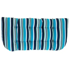 The Lakeside Collection Striped Outdoor Cushion Collection – Blue Stripe Wicker Settee