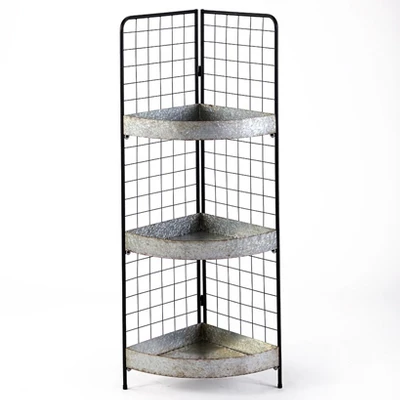 Add storage space to your home with this 3-Tier Metal Corner Shelf. The back of the unit features wire squares in a metal frame. It has 3 shelves, each with a lip to prevent items from falling off.