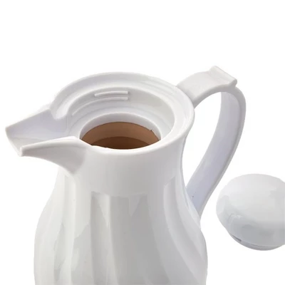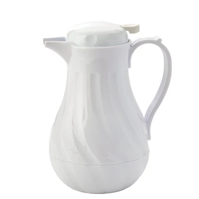 The 42-oz. Insulated Coffee Carafe is your perfect partner for keeping your coffee warm and ready to pour all day long. Inspired by the sophisticated carafes found in high-end restaurants and hotels, this thermal coffee carafe combines practicality with sleek style. Its triple-wall insulation keeps your coffee hot while maintaining its fresh, bold flavor, so you can enjoy every sip. The large, ergonomic handle ensures effortless pouring, while the convenient thumb lever allows one-handed operation’just press down to pour and release to seal. Whether you’re hosting a gathering, having a leisurely breakfast, or fueling a busy workday, this carafe is designed for ease and durability. Made with an elegant swirled exterior, it brings a touch of class to any setup. The impact-resistant design makes it tough enough for daily use, and its compact size is ideal for home or office use. Great for coffee lovers and anyone who appreciates a hassle-free way to serve hot beverages, this insulated carafe also works well for tea or hot chocolate. Key Features:MADE TO KEEP COFFEE WARM: Triple-wall polyurethane insulation preserves heat and maintains the fresh flavor of your coffee for hours.EASY ONE-HAND POURING: Features a user-friendly thumb lever for simple pour-and-seal functionality.UNBREAKABLE DESIGN: Made with impact-resistant materials for everyday durability, perfect for home or office use.VERSATILE AND STYLISH: Elegant swirled exterior adds a touch of sophistication.MORE THAN COFFEE: It’s also perfect for tea and hot chocolate. Made of: Polycarbonate, polypropylene, and silicone Measurements: 6″ dia. x 10″H Notes: Hand wash only