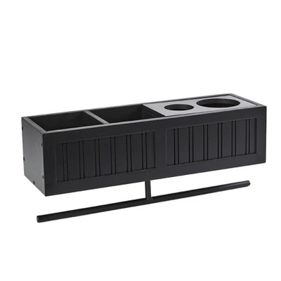 - 15-3/4″W x 5″D x 7″H. MDF and metal.