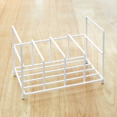 - The wire organizer has 4 slots to neatly hold your food container lids vertically.