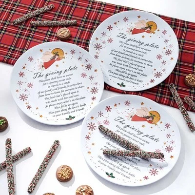 Set of 3 Melamine Giving Plates is the gift that keeps spreading joy! Fill them with homemade treats for Thanksgiving and Christmas and give them to friends. Then, they can fill it with their own specialities and pass it along to someone else. Next, that person gives it away, and so on. Who knows, maybe one plate will find its way back to you! Made of: Melamine Measurements: 12″ dia., each Notes: Freezer and dishwasher safe