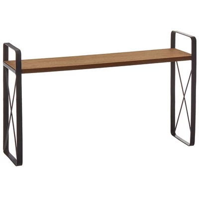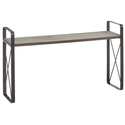 Give your bathroom a fresh, new look with the Farmhouse Bathroom Collection. Four coordinating pieces feature clean lines and the classic contrast of metal and woodgrain. Wall Shelf with Hooks Iron and MDF 18-1/2″W x 5″D x 9-1/2″H Assembly required; assembly hardware included Toilet Tissue Holder MDF and iron 7-7/8″W x 4-3/4″D x 4-3/8″H Assembly required; assembly hardware included Over the Sink Shelf Iron and MDF 20-1/2″W x 5″D x 12-1/4″H Assembly required; assembly hardware included Over Toilet Spacesaver Tower Iron and MDF 24-3/4″W x 10-1/2″D x 59-1/2″H Assembly required; assembly hardware included