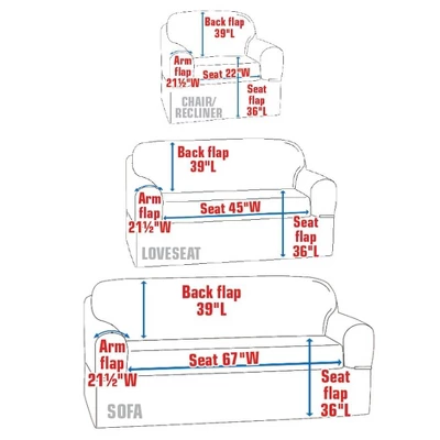 - Measurements: Available in Chair Cover (65″W x 75″L), Love Seat Cover (88″W x 75″L), and Sofa Cover (110″W x 75″L) sizes to fit various furniture types.