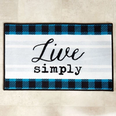 Give your bathroom a touch of the farmhouse with this Live Simply Spring Truck Bathroom Collection. The design features a black and teal buffalo check and the words “Live Simply.” The Shower Curtain includes a country pickup, with spring flowers in the truck bed. The Bath Rug is backed with nonslip latex.