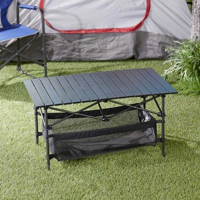 Take your next camping trip to the next level with the Outdoor Portable Folding Table. This sturdy, foldable table is perfect for enjoying meals, games, or prepping food in the great outdoors. It features a convenient lower mesh compartment that provides additional storage space for all your camping essentials, so everything you need is within arm’s reach. Quick and easy to set up, this table saves you time and effort to focus on enjoying the outdoors. Once you’re done, it rolls up neatly and fits into the included storage bag, making it a breeze to carry and transport. Whether you’re heading to the mountains or the beach, the Outdoor Portable Folding Table combines compact convenience with everyday practicality. Lightweight yet durable, it’s designed to hold steady even on uneven ground. Keep your camping experience organized and hassle-free with this travel-friendly table. From family trips to solo adventures, it’s the ultimate companion for all your outdoor activities. Get ready to simplify your camping setup with the Outdoor Portable Folding Table and make your next adventure more memorable.Key Features:COMPACT AND PORTABLE: Folds up and rolls into the included storage bag for hassle-free transport. DURABLE AND RELIABLE: Sturdy design supports your activities, even on uneven terrain. EXTRA STORAGE SPACE: Equipped with a lower mesh compartment to keep essentials within reach. EASY TO SET UP: Quick assembly allows you more time to enjoy camping. PERFECT FOR OUTDOORS: Ideal for camping, picnics, or beach outings. Made of: Aluminum and polyester Measurements: 37″W x 21.7″D x 20″H