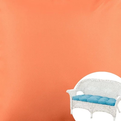 Refresh the look of your wicker settee with a new seat cushion. This puffy seat cushion will make any wicker settee more comfortable. This solid color cushion will enhance the look of your outdoor décor. Colorful replacement cushions are a quick and easy way to rejuvenate tired patio furniture. 39″W x 17-1/2″D x 4″H. Polyester with polyfill.