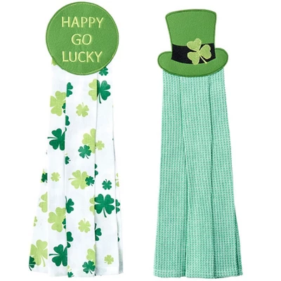 Add a festive touch to your kitchen with the St Patricks’s Day Kitchen Tie Towels Happy Go Lucky Set of 2, perfect for a celebrations. These charming towels bring a splash of joy and color; one towel features the cheerful message “Happy Go Lucky” and bright shamrocks, while the other boasts a delightful leprechaun hat design. Crafted to not only elevate your kitchen decor but also serve as functional accessories, these towels make drying dishes a delightful experience. With their vibrant green palette and playful details, they embody the spirit of the holiday and create an inviting atmosphere. Don’t miss out on adding these whimsical towels to your collection’they’re sure to brighten up your space and your day! Key Features:VIBRANT HOLIDAY DESIGNS: Bring the joyful spirit of St. Patrick’s Day into your kitchen with cheerful shamrocks and a charming leprechaun hat design.DELIGHTFUL DRYING EXPERIENCE: These towels make drying dishes an enjoyable task, adding a splash of joy to your daily routine.FUNCTIONAL DECOR ACCESSORIES: Not just eye-catching, these towels are crafted to be functional accessories, elevating your kitchen decor while serving their purpose.INVITING ATMOSPHERE: The vibrant green palette and playful details create an inviting atmosphere, making your kitchen a cheerful space for family and guests.PREMIUM MATERIALS: Made of high-quality cotton, these towels ensure durability, absorbency, and long-lasting use. Made of: Cotton Measurements: 16″W x 18″L, each Notes: