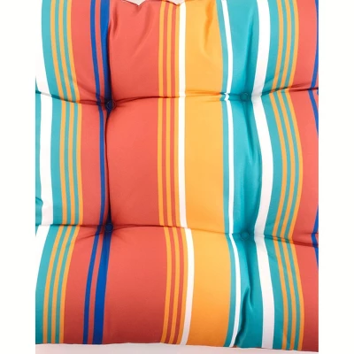 Renew your wicker settee by replacing its worn out cushion. This puffy seat cushion is sure to make any wicker settee more comfortable. A colorful new striped cushion on your settee will enhance the total look of your outdoor décor. New cushions are a quick and easy way to rejuvenate tired patio furniture. 39″W x 17-1/2″D x 4″H. Polyester with polyfill.
