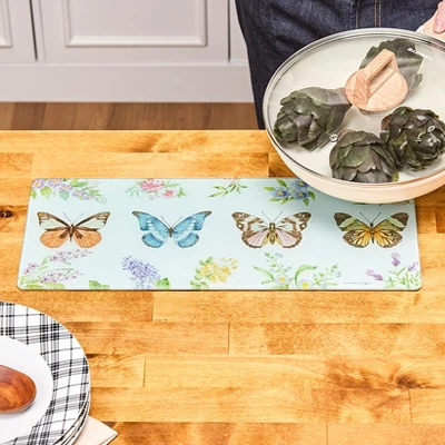 The 20″ Kitchen Countertop Protector is here to bring a smile to your kitchen and protect your countertops from life’s little mishaps. Designed with a charming Whimsical Butterfly or playful Farmhouse Rooster motif, this versatile gem adds a sprinkle of personality to your decor. Slice fresh, juicy vegetables or serve up artisanal cheeses on its robust surface’it’s a cutting board, serving tray, and decorative accent rolled into one! Whether you’re a master chef or a hosting novice, this protector offers a reliable shield against unsightly scratches, spills, and the dreaded heat marks from sizzling pots. It’s not just practical; it’s a delightful addition to any culinary space that says, ‘Welcome to my kitchen!’ Get ready to turn everyday cooking into an extraordinary experience and impress your guests with both style and functionality. Plus, with its eye-catching design, it doubles as a conversation starter at any gathering. Why settle for ordinary when you can have a piece that’s truly extraordinary? Enjoy peace of mind knowing your counters are in good hands. Make the Whimsical Countertop Protector a staple in your kitchen arsenal today, because every cook deserves a touch of whimsy!Key Features:ADD A TOUCH OF CHARM: Adorable Whimsical Butterfly or Farmhouse Rooster motif to brighten up your kitchen. KEEP YOUR COUNTERS SAFE: Protects countertops from scratches, spills, and heat with ease. MULTIPURPOSE FUNCTIONALITY: Doubles as both a cutting board and a serving tray for added versatility. COMPLEMENT ANY DECOR: Features a versatile design that blends seamlessly with any kitchen style. PERFECT GIFT IDEA: An ideal present for home cooks who appreciate both beauty and practicality. Made of: Glass Measurements: 20″W x 8.50″L
