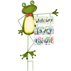 Greet everyone to your favorite space with a Welcome to My Garden Stake. Place this dapper frog next to the gate or in a flowerbed for a touch of whimsy. Made of: Metal Measurements: 20″W x 1/2″D x 32″H